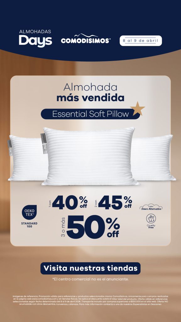 Hay algo que puede cambiar completamente tu forma de dormir, En nuestros Almohadas Days tenemos condiciones especiales para que renueves tus almohadas y mejores tu descanso, Es el complemento que hace la diferencia cada noche. Te esperamos en el local 2-35.