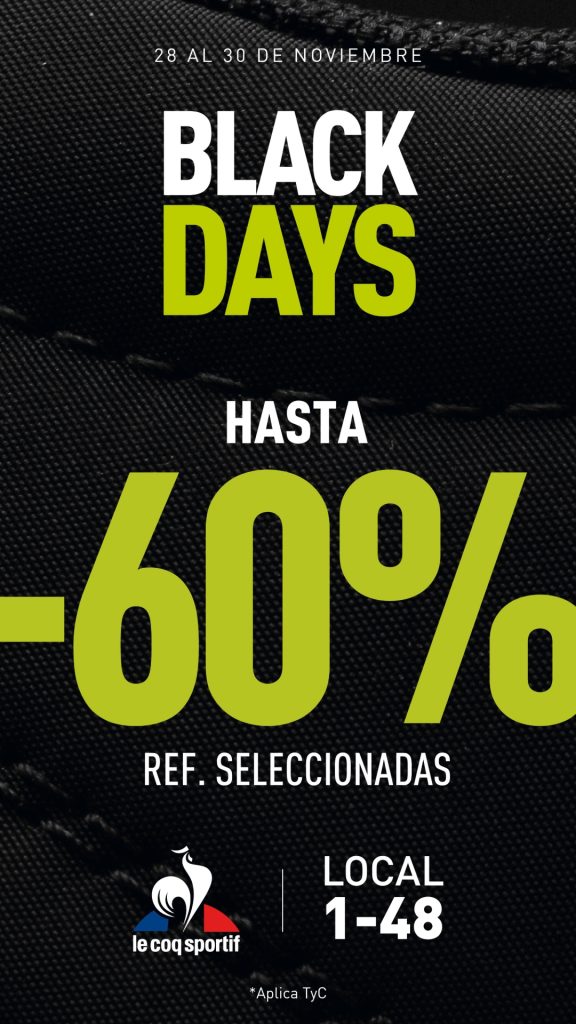 Black Days en Le Coq Sportif, descuentos en toda la tienda.